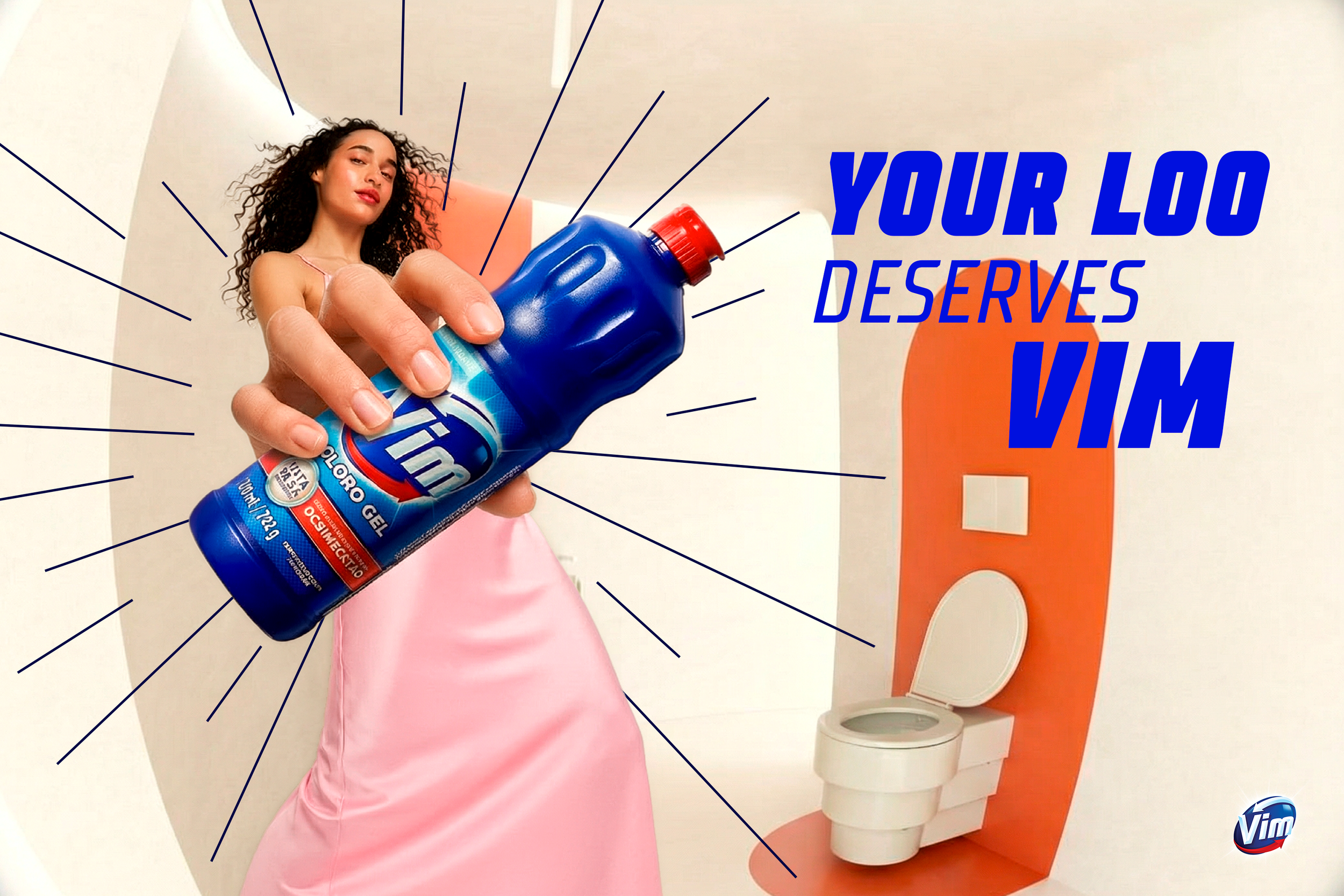 Instead of following the usual visual codes, I treated Vim like a fashion product: attitude, presence, and personality. In a noisy, predictable category, the brand steps into a heroic role, not just because it cleans, but because it transforms the bathroom into a high-tech, fashion-forward, fully disinfected space.